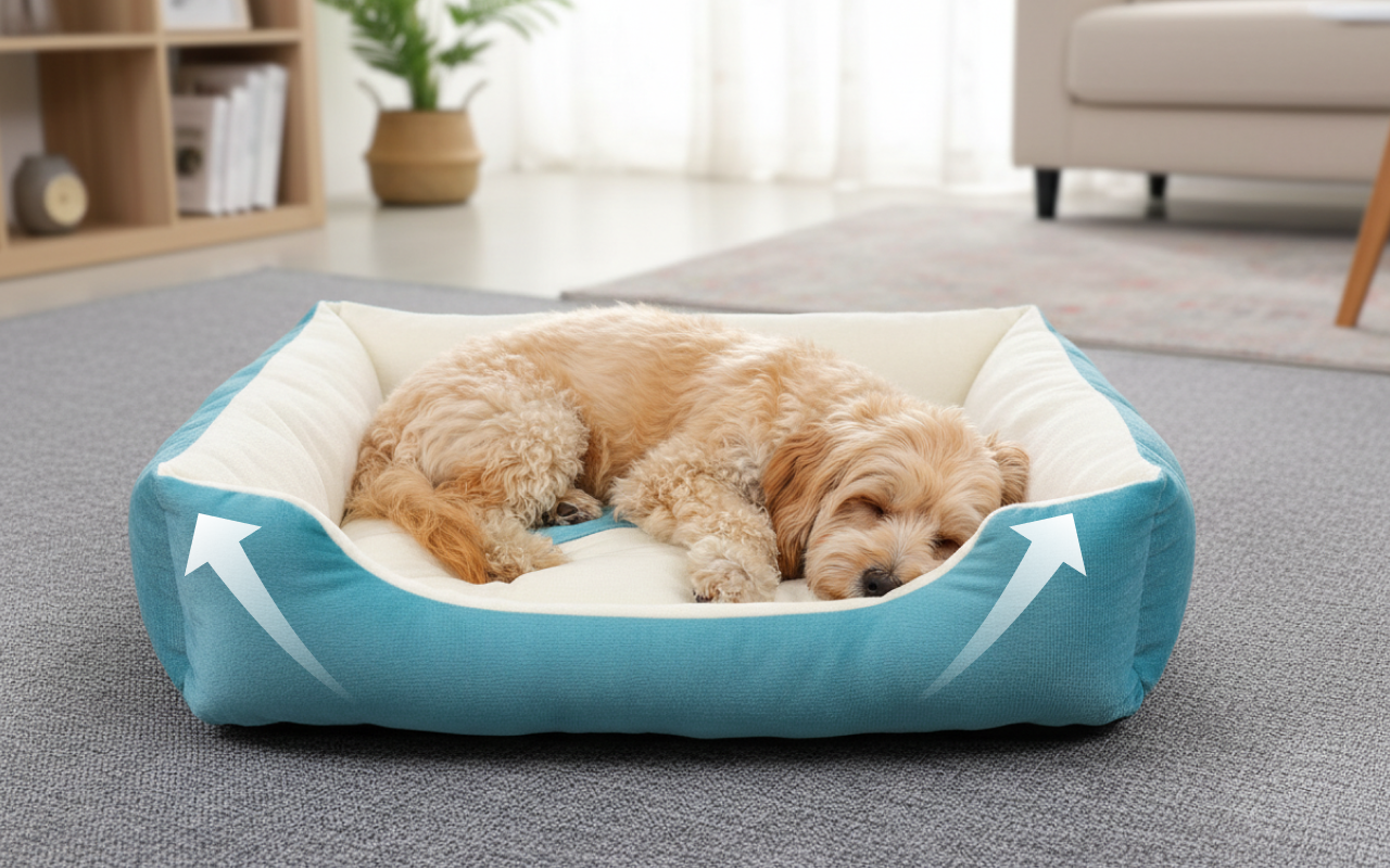 Upphöjda kanter ger en känsla av trygghet vid vilan. Ditt husdjur kan kura ihop sig mot sidorna för extra värme.