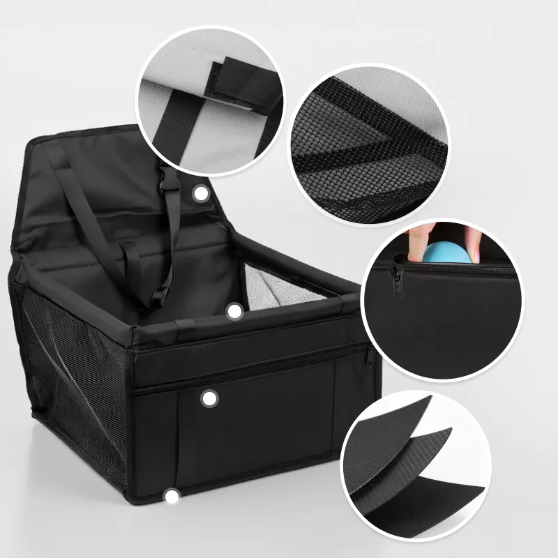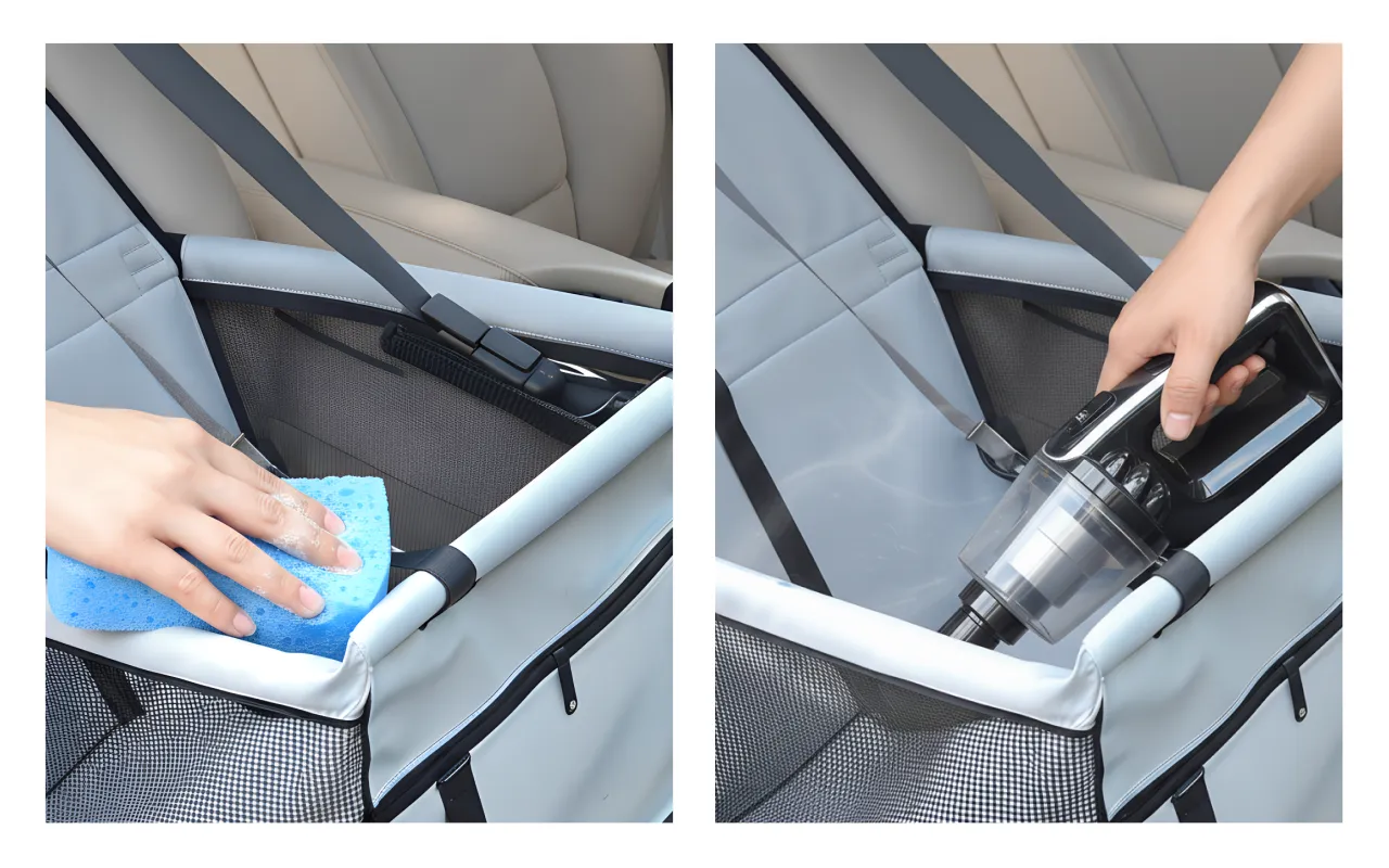 Oroa dig inte längre för smutsiga säten eller oroliga resor. Denna smarta design gör att din följeslagare sitter tryggt och bekvämt på varje resa. Tillverkad av robusta material och enkel att rengöra för stressfria turer. Njut av varje färd i vetskap om att din minsta vän är säker vid din sida.