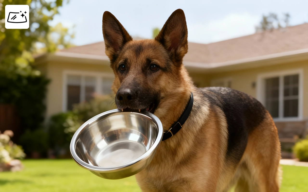 Fin skål, hjälper min hund att äta utan spill.