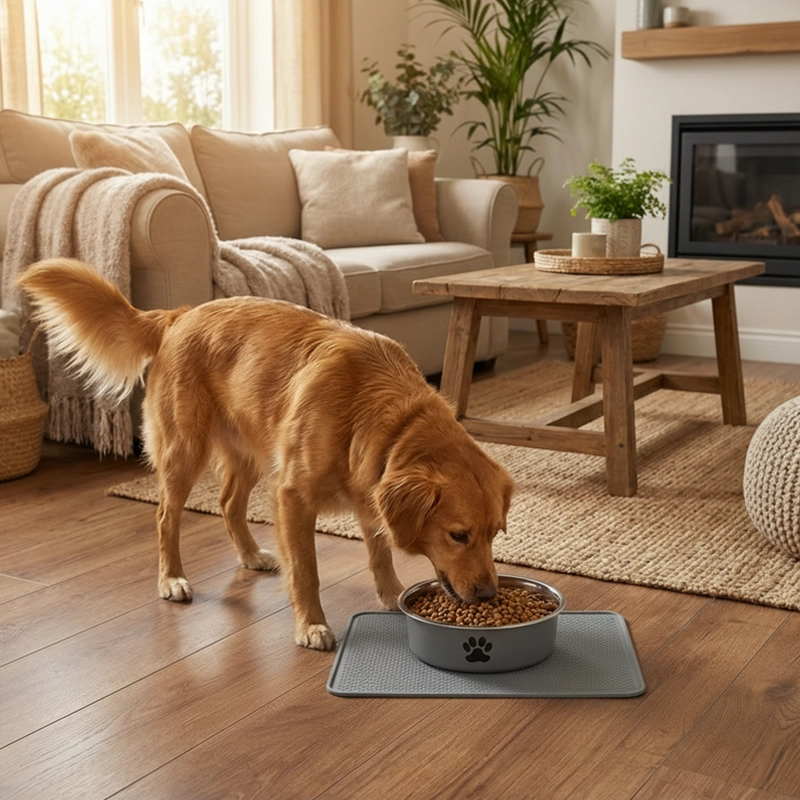 Speciell silikonbas greppar golvet för stabilt ätande. Husdjur kan njuta av sina måltider utan att skålen glider eller spills runt i rummet.