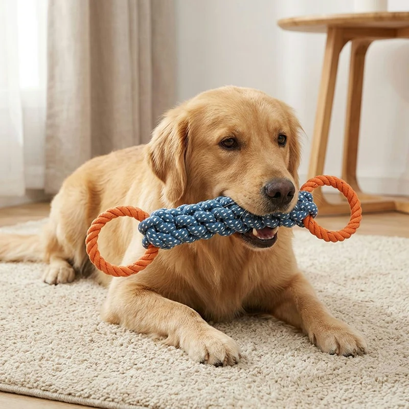 Vår hund älskar att dra i det här repet! Hon leker varje dag, så hennes tänder ser bättre ut. Bra för apport också. Andedräkten luktar mycket bättre nu.