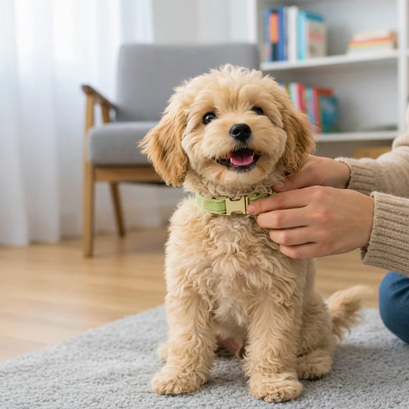 Primdog kombinerar elegant stil med skonsam vård. Den justerbara passformen förhindrar obehag eller skav kring halsen. En liten bjällra hjälper dig att hålla din nyfikna vän säker inomhus.