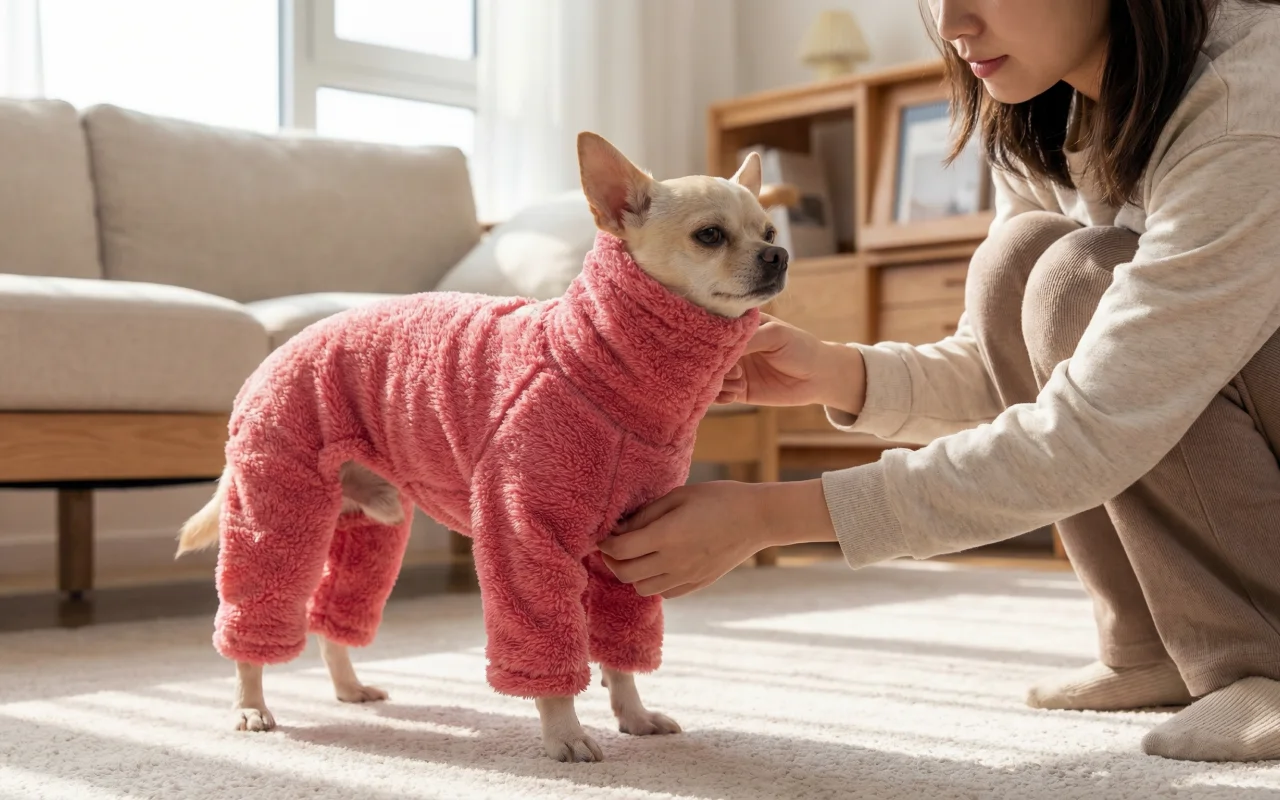 Varma fleeceonesies för hundar – söta, mjuka pyjamasar med hög krage