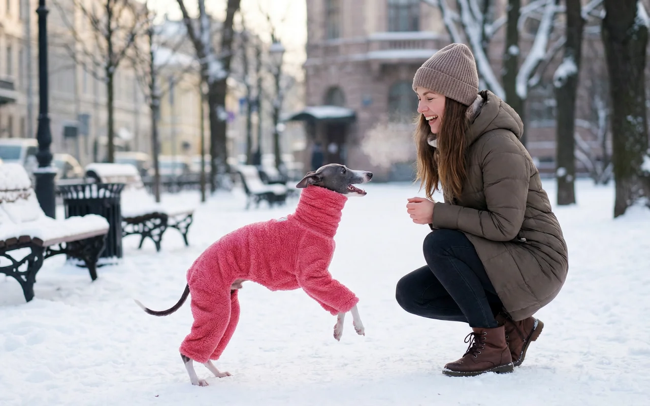 Perfekt för kyliga promenader! Min hunds nacke och hela kropp håller sig varm och mysig. Hon blir glad när hon ser pyjamasen tas fram.