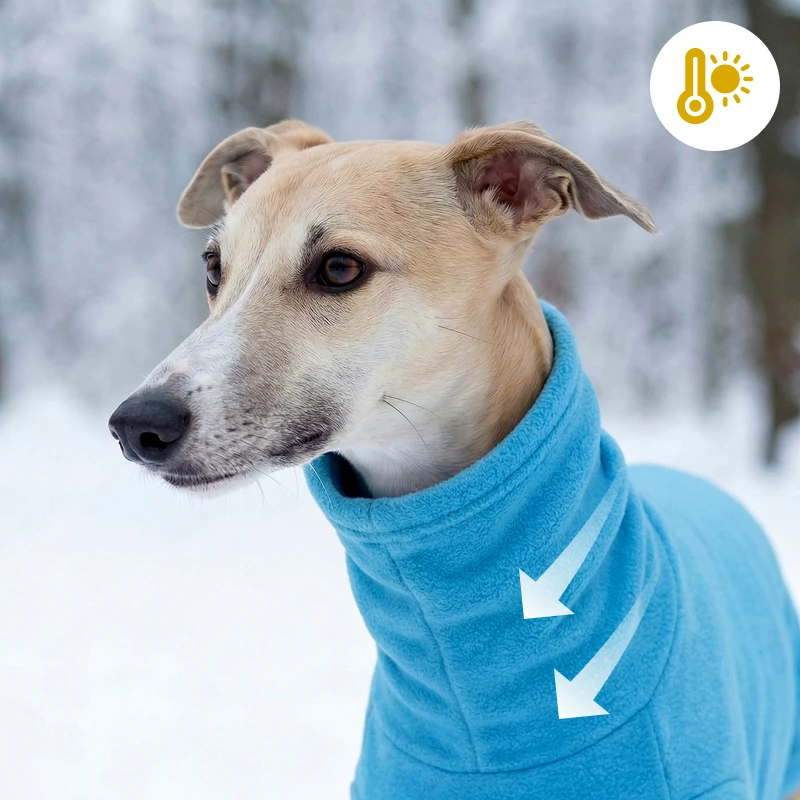 Mjuk fleece skyddar mot kraftig vind och låga temperaturer. Hundar håller sig nöjda och glada under långa promenader utomhus.