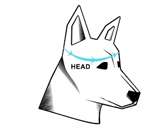 • 1. Linda måttbandet runt den bredaste delen av hundens huvud, precis framför öronen.