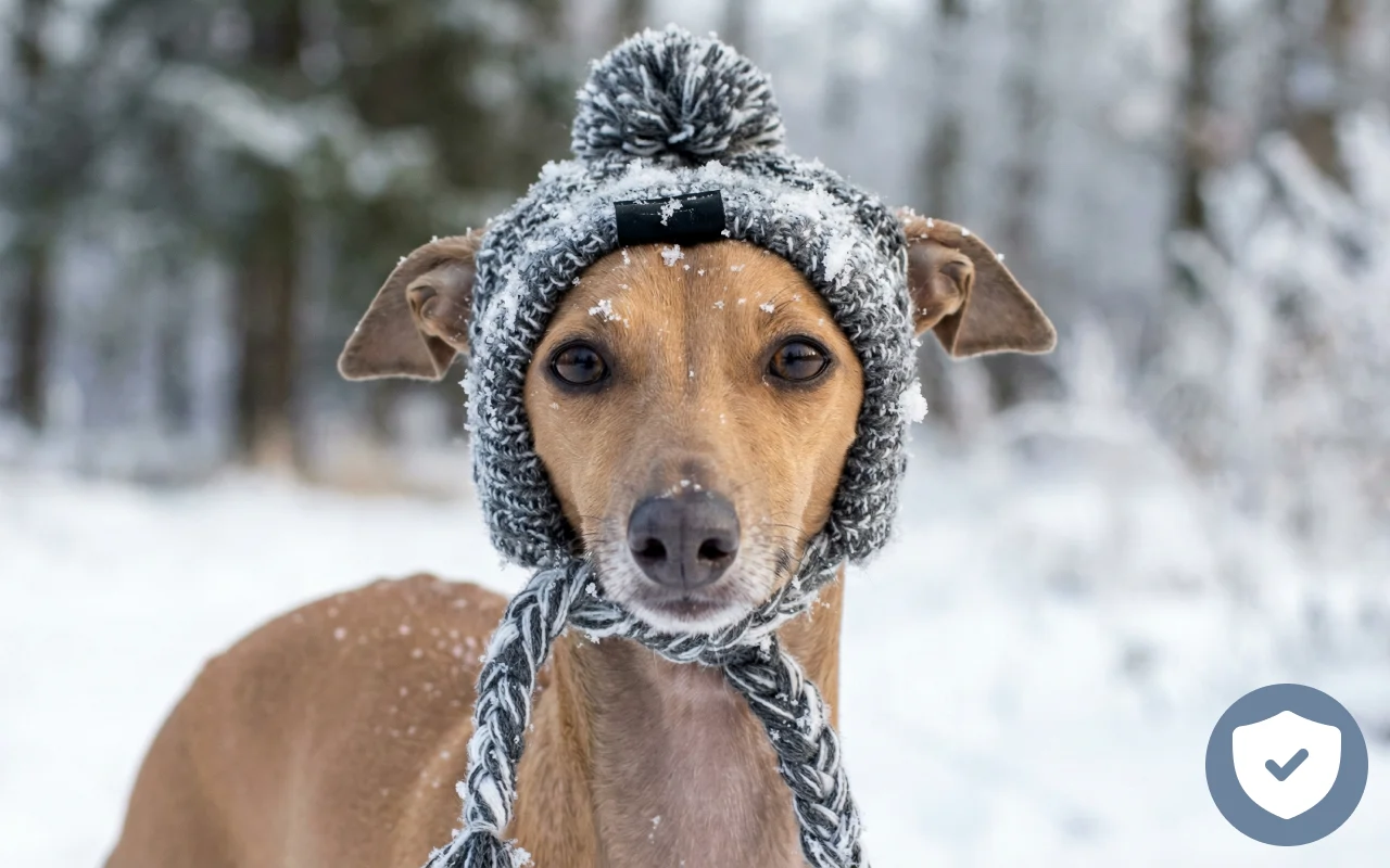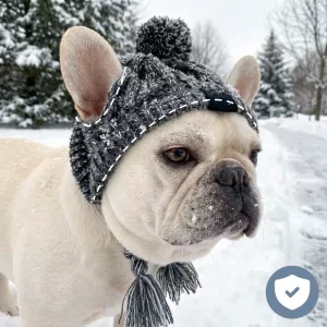 Varm stickad vintermössa för hund med öronhål