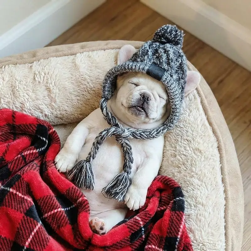 12 recensioner av Varm stickad vintermössa för hund med öronhål