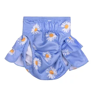 Aldrig någon läcka, sitter som gjutet och de roliga volangerna får all uppmärksamhet i parken! Älskar verkligen denna blöja.