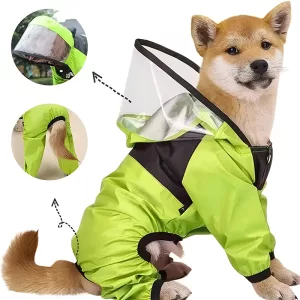 En stor, transparent huva täcker husdjurets huvud helt. Den hjälper till att skydda din hund mot dåligt väder utan att hindra sikten. De kan enkelt utforska utomhus, oavsett om det regnar eller är soligt.