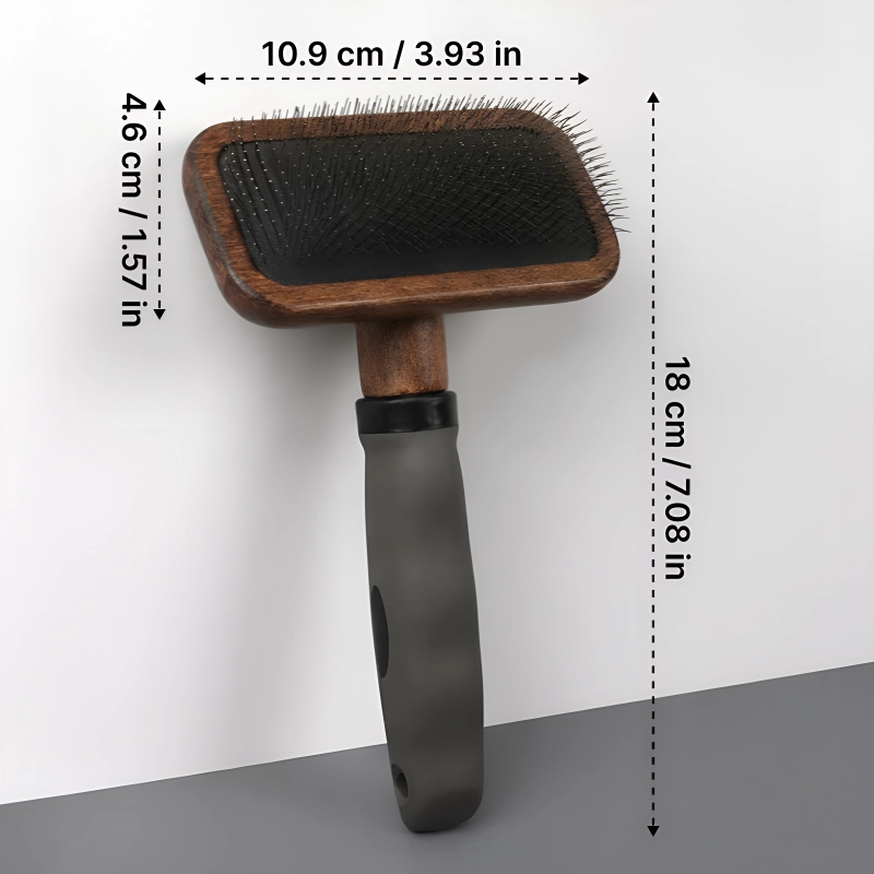 Jag gillar att den är gjord av riktigt trä istället för plast. Borsten är mjuka så min spaniel är inte rädd för att bli borstad längre. Stor tumme upp.